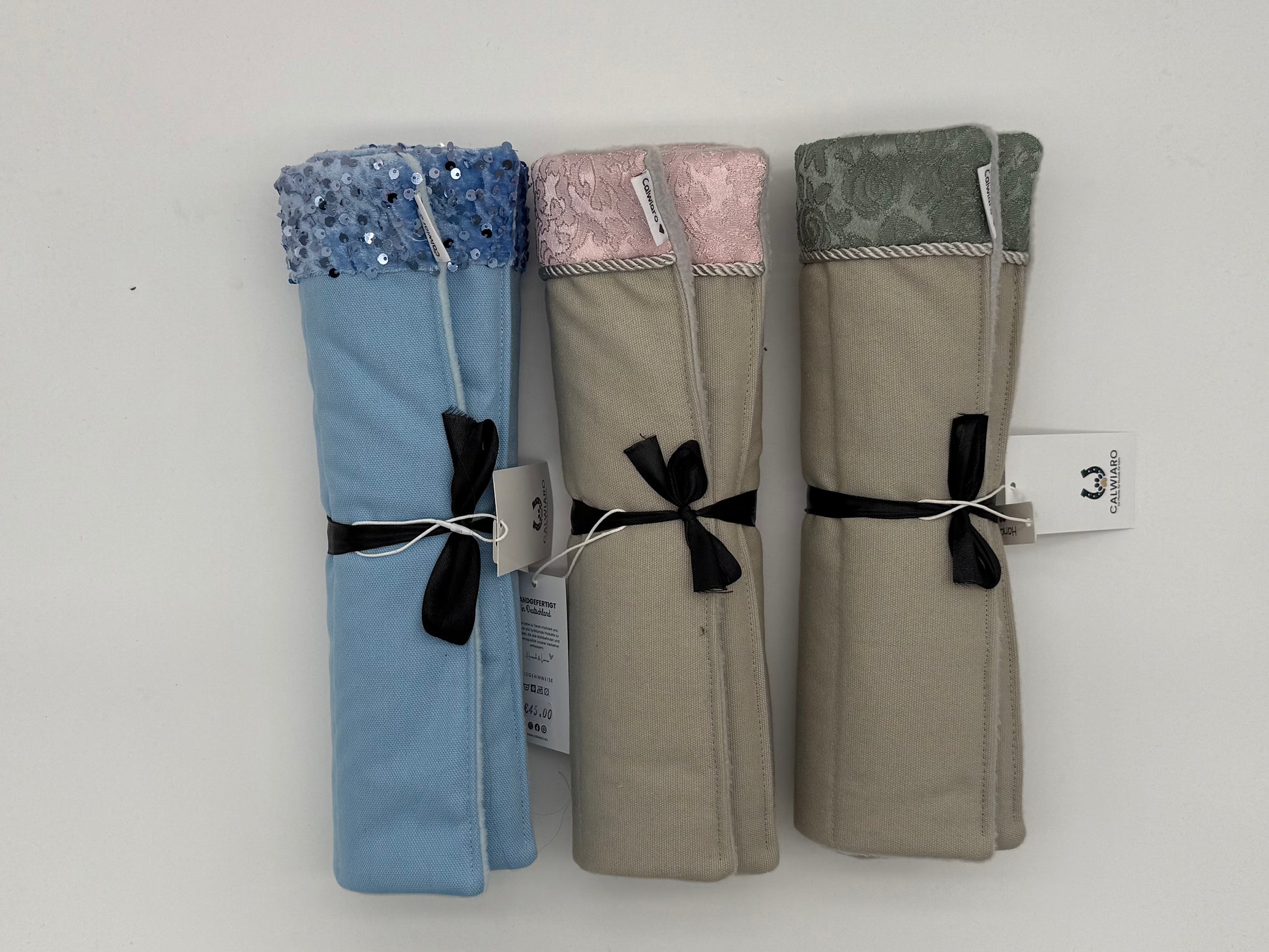 Jedes Set Bandagierunterlagen wird in unserer Manufaktur am Niederrhein sorgfältig von Hand gefertigt. Robust, passgenau und super schön.
