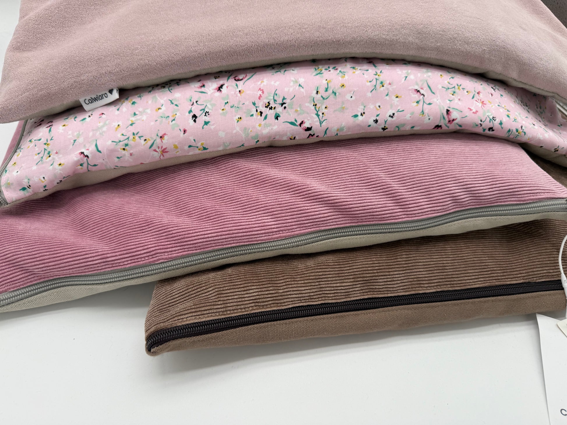 Hinweis: Die Inlays dürfen NICHT gewaschen werden. Sollte das Kissen mal sehr nass werden, kann es warm und in der Nähe einer Heizung trocknen.