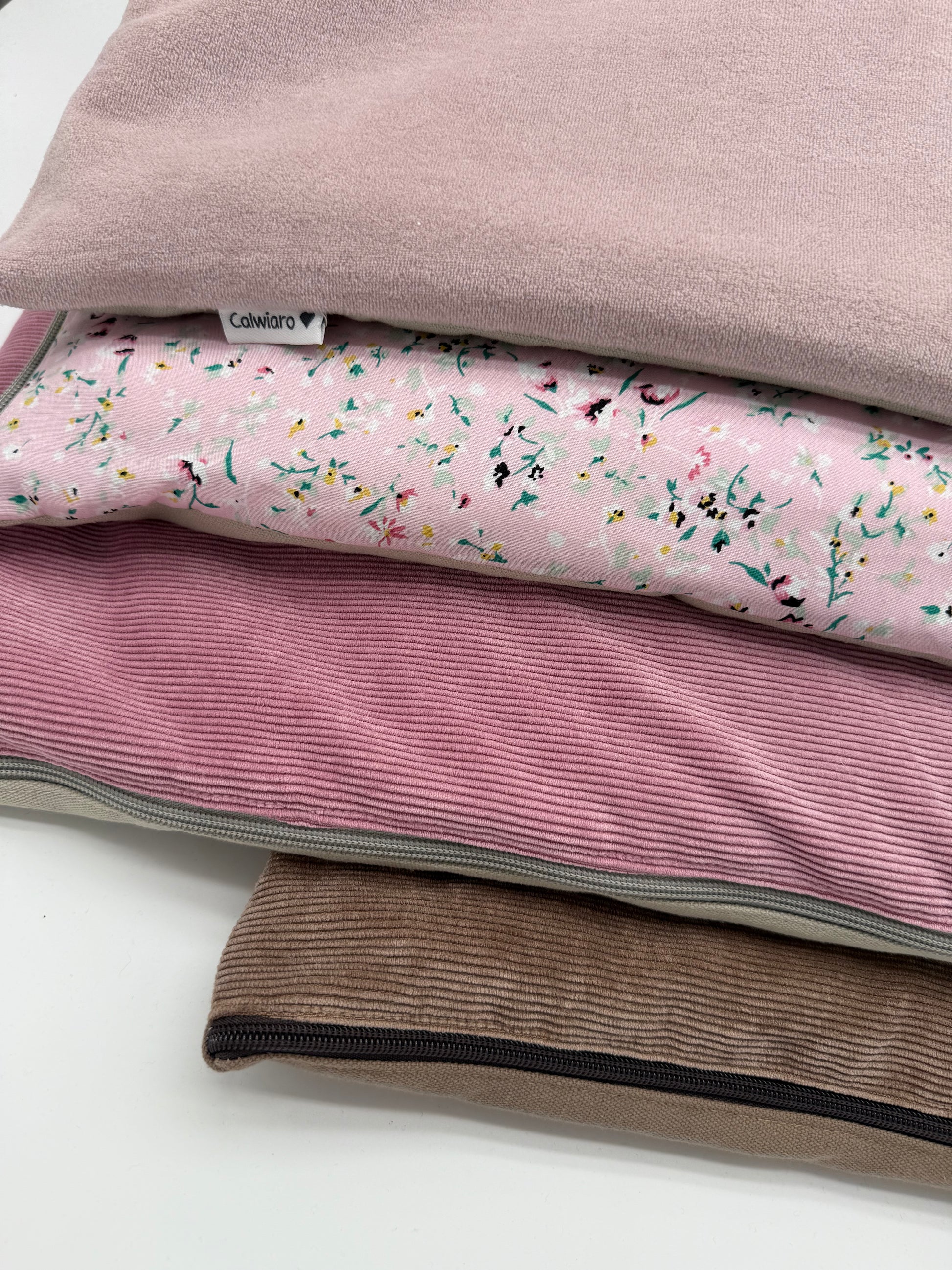 Der Wärmekissen Bezug? Das Wärmekissen besteht aus einem Inlay im Inneren, in dem sich die Dinkelspelze befinden. Der Wärmekissen Bezug kann in der Waschmaschine bei 30° gewaschen werden. Das Inlay ist nicht waschbar und sollte vor dem Waschgang aus dem Kissen entfernt werden, was ein Reißverschluss am unteren Ende ermöglicht.