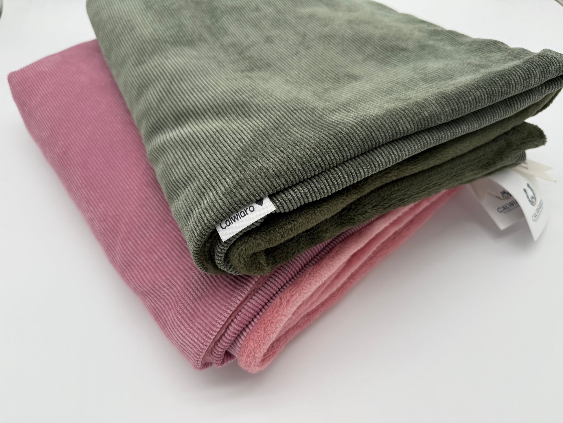 Die Oberseite besteht aus feinem Cordstoff, die Unterseite aus kuscheligem Plüschfell. Diese Kombination sorgt für eine angenehme Wärme und sieht gleichzeitig sehr schön und hochwertig aus.