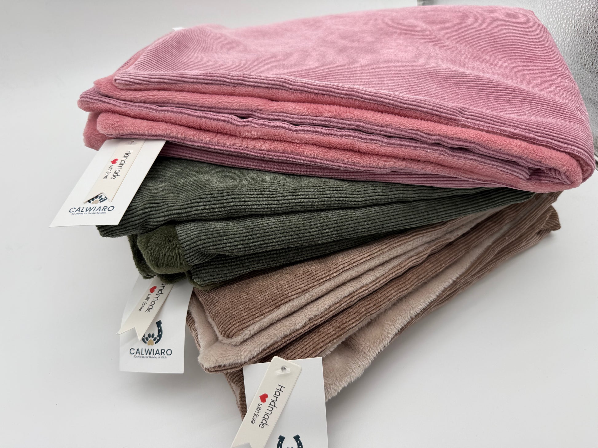 Jede Decke wird in unserer Manufaktur am Niederrhein sorgfältig von Hand gefertigt. Robust, passgenau und super schön.