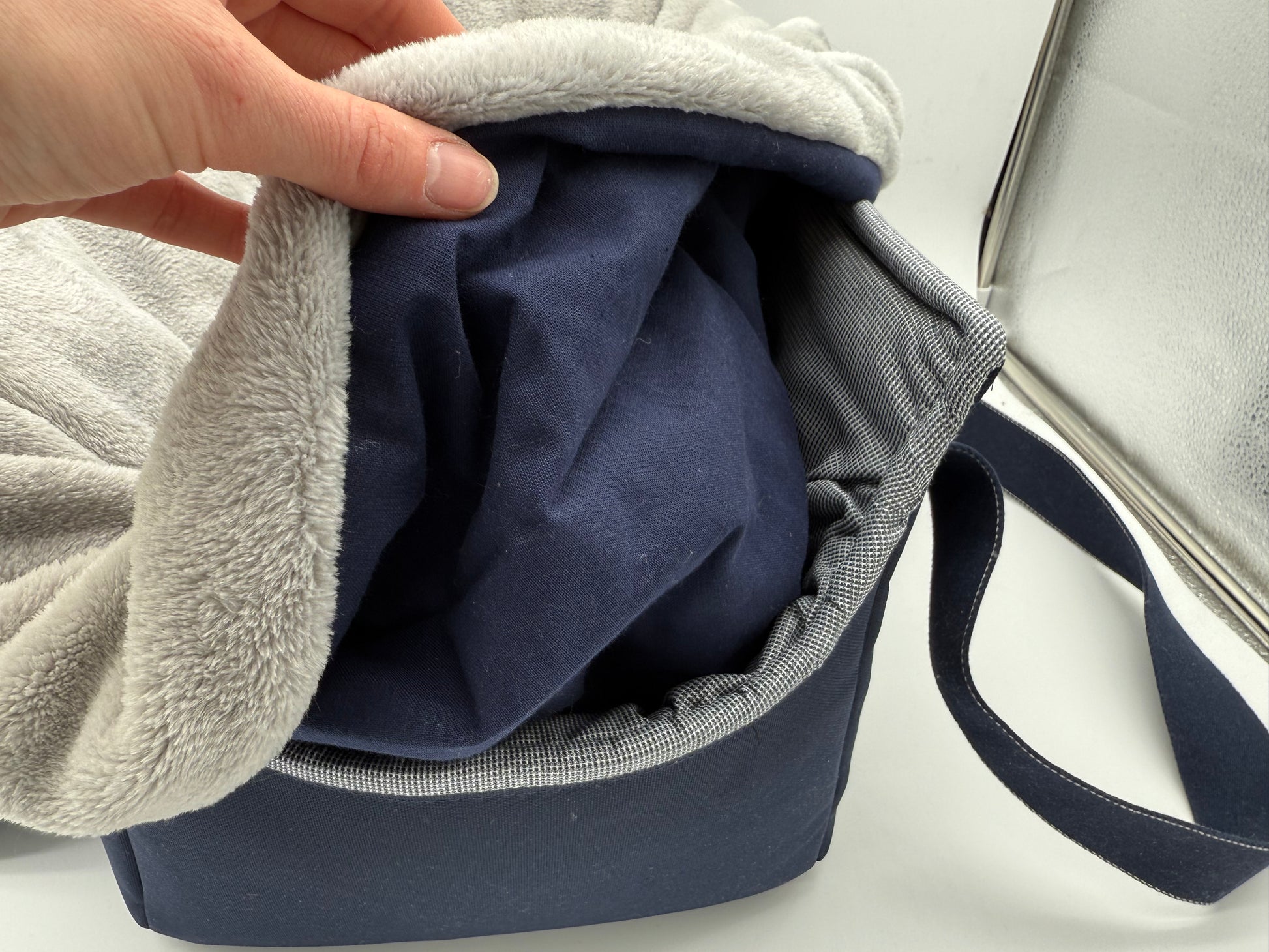 Sehr hochwertig und stabil gearbeitete Hundetasche für kleine Hunde. Das Innenfutter ist herausnehmbar und kann gewaschen werden.