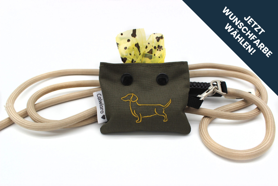 Kotbeutelspender als exklusives Dackelzubehör für deine Hundeleine individuell für dich gefertigt.