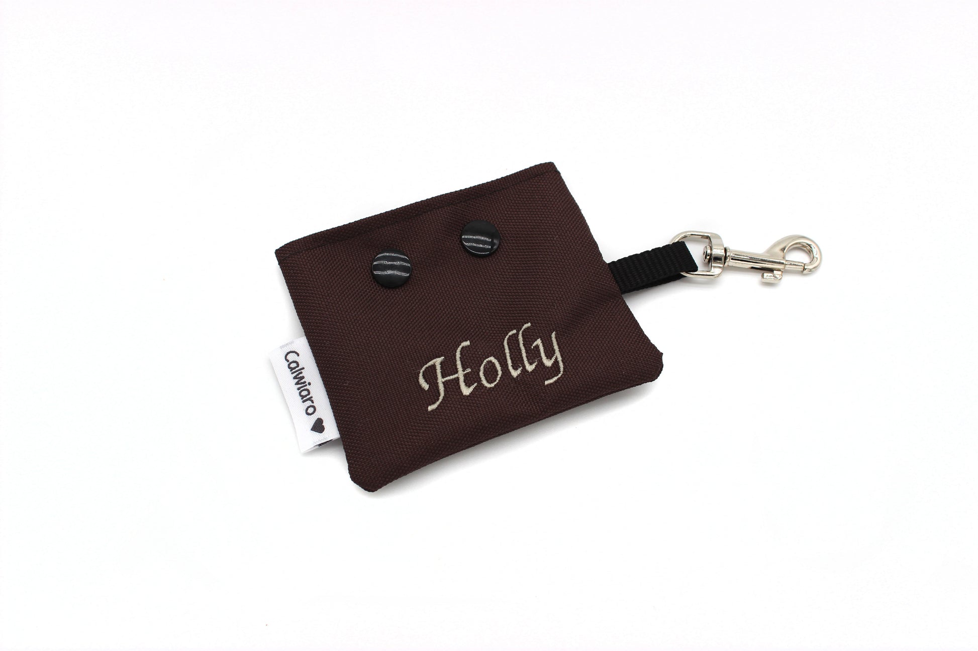 Kotbeutelspender mit Hundename als exklusives Hundezubehör für deine Hundeleine. Individuell für dich in Deutscher Manufakturarbeit gefertigt.