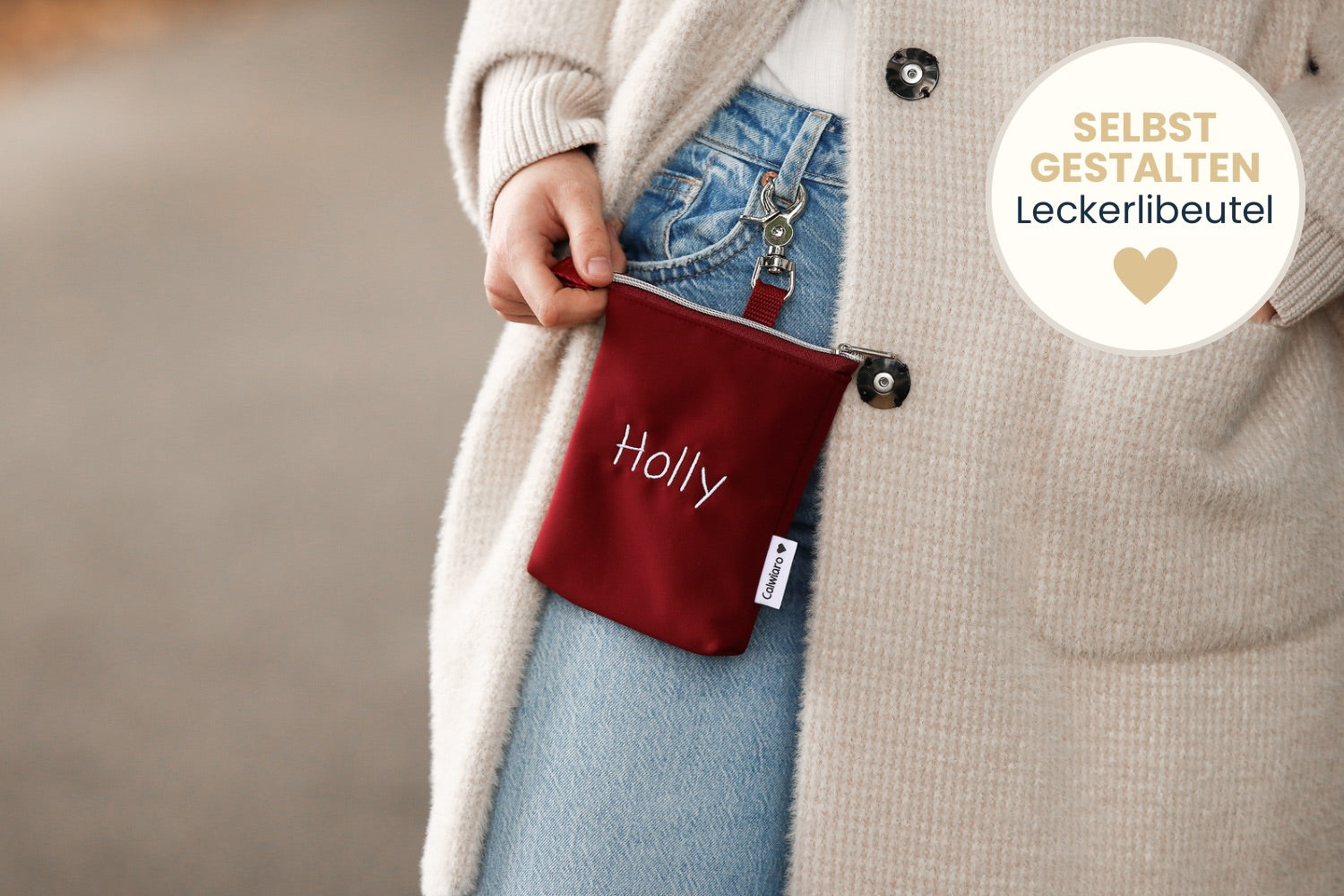 Calwiaro steht für langlebige Qualität, auch bei den kleinen Dingen. Jeder Beutel wird aus strapazierfähigem Softshell gefertigt und mit einem hochwertigen Reißverschluss versehen, der deine Leckerlis sicher verschließt. Das durchdachte Design kombiniert Funktionalität mit Stil. Handgemacht, robust und super schön.