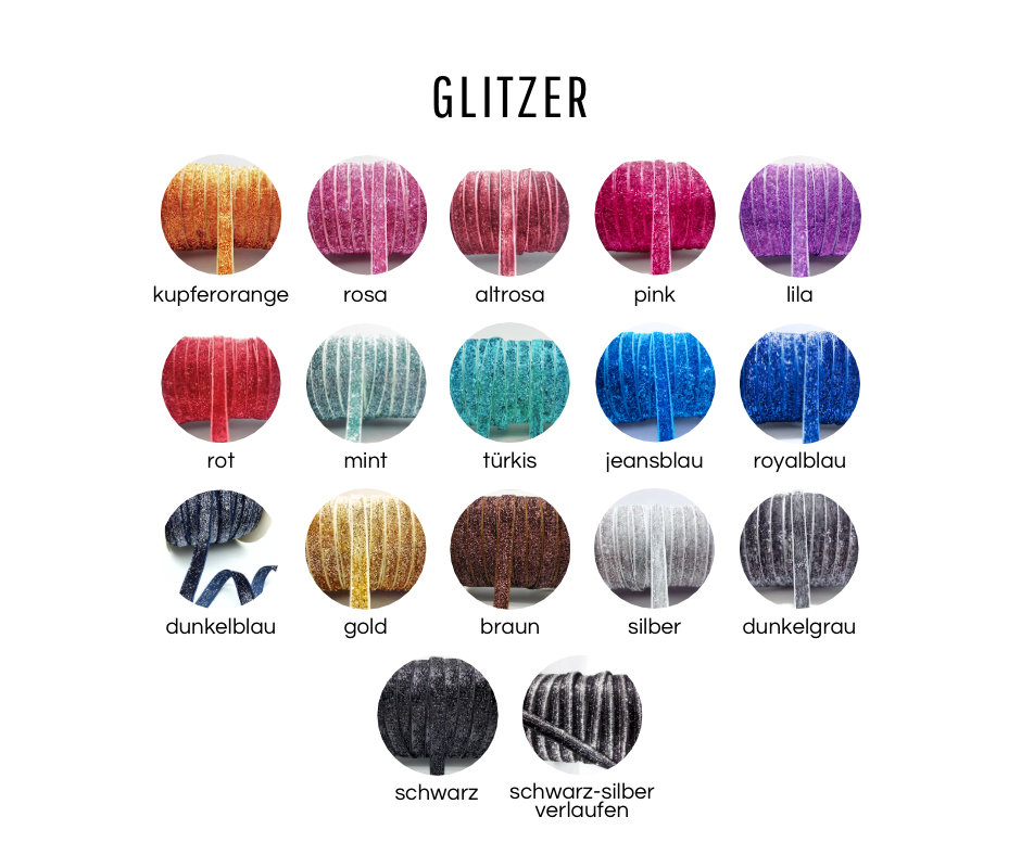 - Unter „Glitzer“ kannst du die Farbe deines Glitzerbands auswählen.