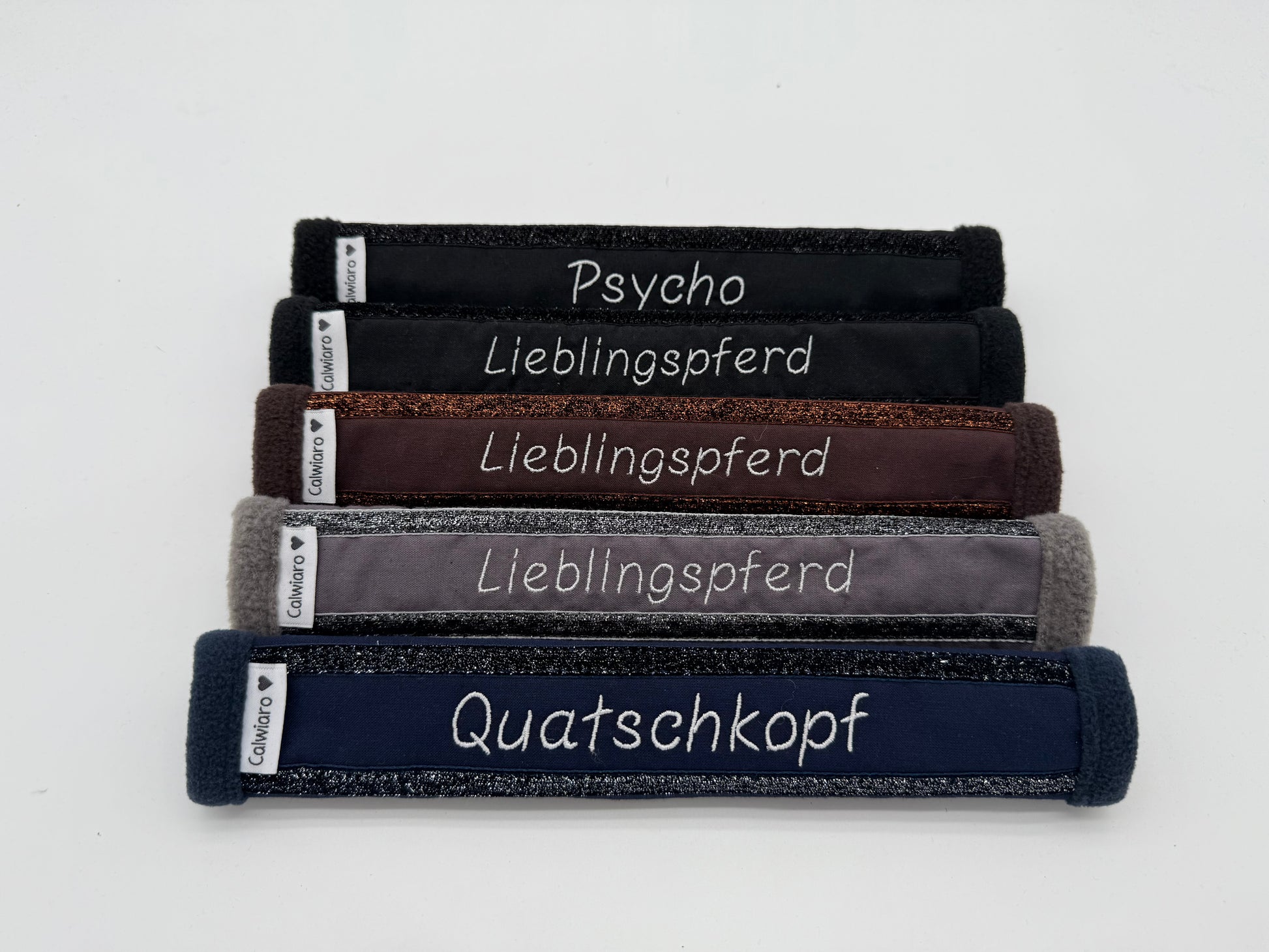 Jedes Noseband wird durch den Pferdenamen ein super schönes Einzelstück. Dank robuster, formstabiler Premium-Materialien bleibt es auch bei täglicher Nutzung in perfekter Form. Das praktische Klettsystem sorgt dafür, dass du es im Handumdrehen anbringen oder wechseln kannst, und die pflegeleichte Verarbeitung macht die Reinigung in der Waschmaschine ganz einfach. Stilvoll, funktional und absolut alltagstauglich – ein kleines Detail mit großer Wirkung.