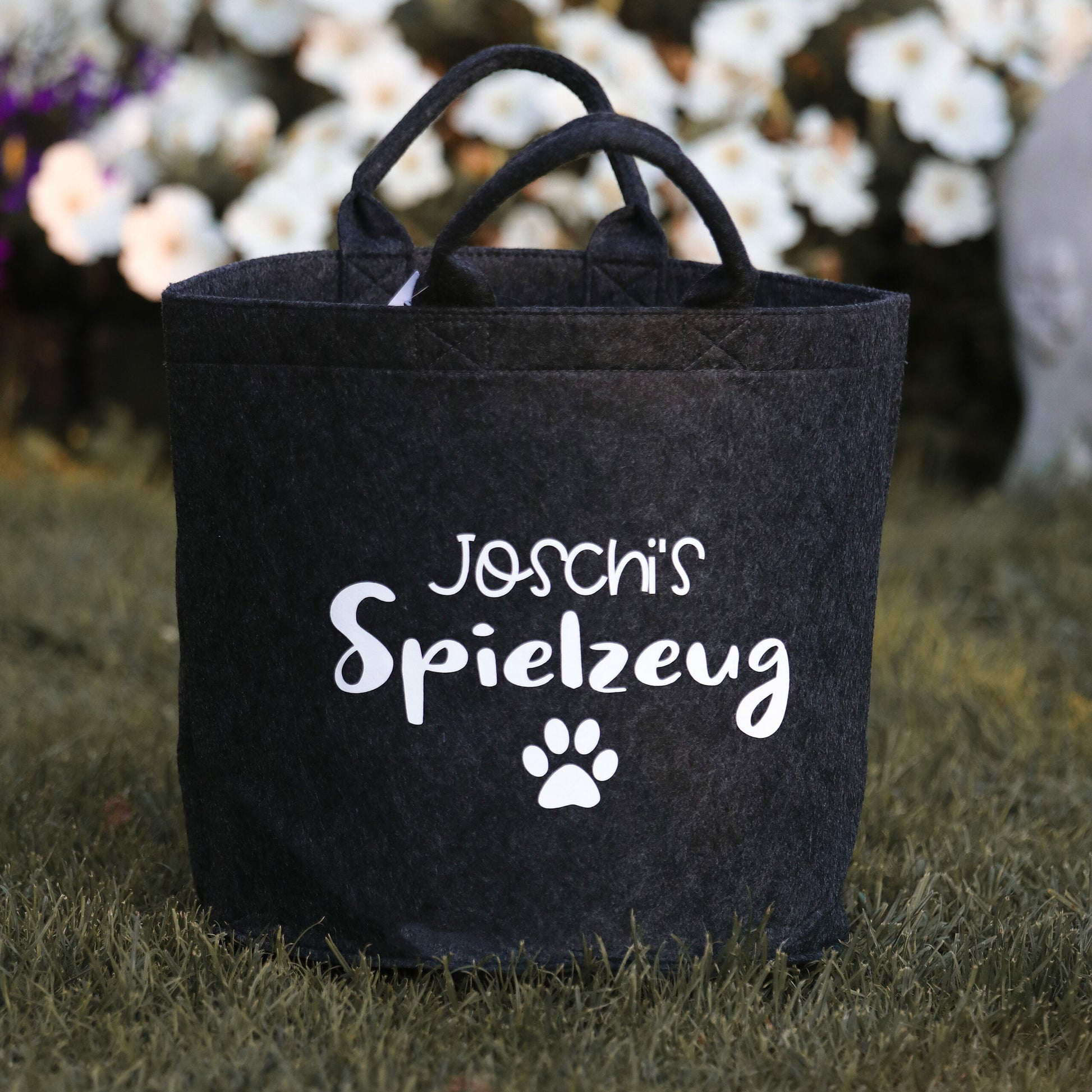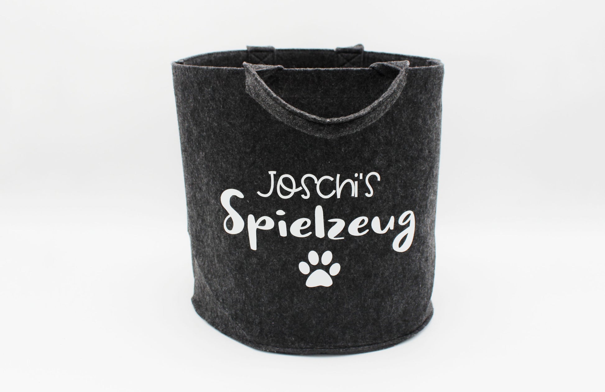 Hunde Spielzeugkorb individuell mit Namen bedruckt – Geschenk für Hundebesitzer!