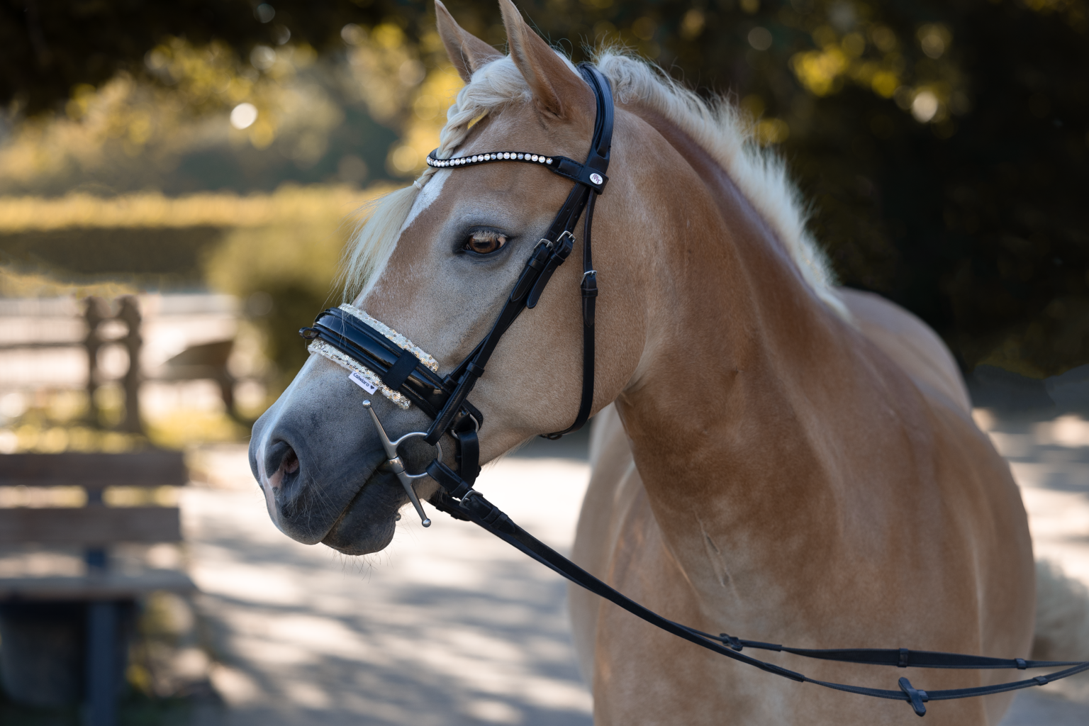 Du kannst deine Trensenunterlage mit oder ohne Klettverschluss wählen. Der Klettverschluss sorgt für einen zusätzlich besseren Halt an deiner Trense.